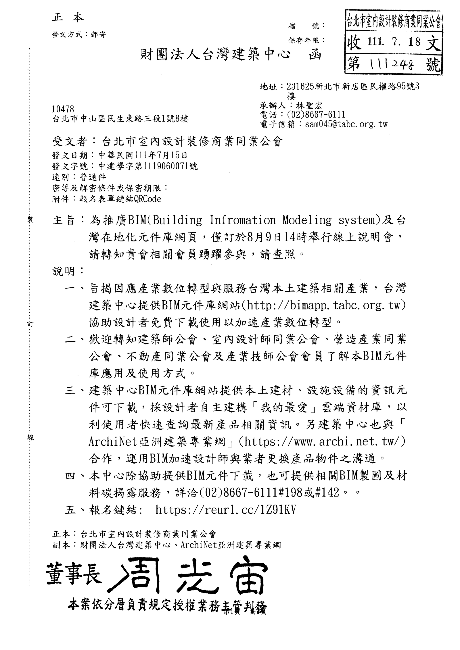 另建築中心也與「ArchiNet亞洲建築專業網」(https://www.archi.net.tw/)合作,將建材、設施設備的資訊與建築中心BIM元件庫網站(http://bimapp.tabc.org.tw)連通,以利使用者快速來往查詢相關資訊,串聯起設計、使用者與供應商需求,逐步為營建產業奠下轉型基石。歡迎各方響應合作,促進產業共好願景。