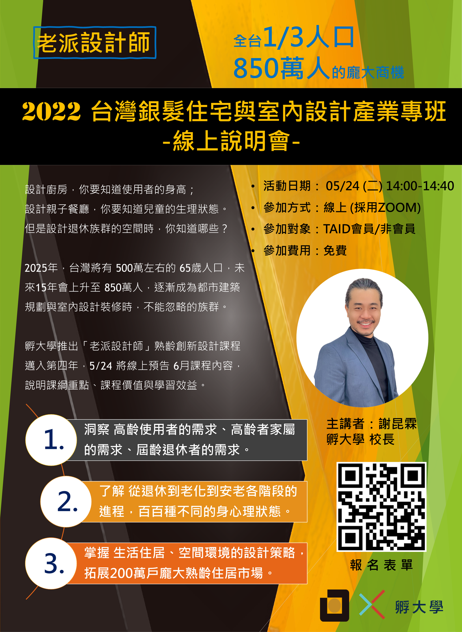 TAID X 孵大學 主辦  | 老派設計師-台灣銀髮宅室內設計產業專班 課程 熱烈招生中📣