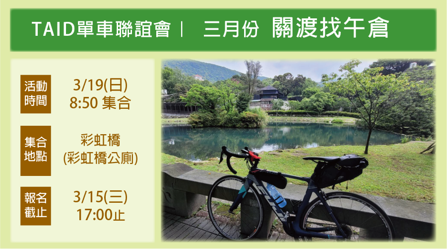 TAID單車聯誼會|3月份 關渡找午倉🚴