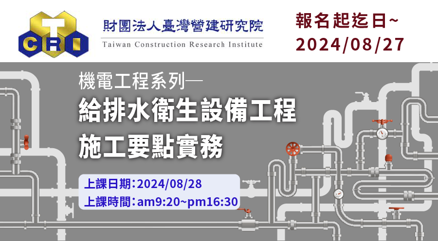 TAID課程|財團法人臺灣營建研究院-給排水衛生設備工程施工要點實務