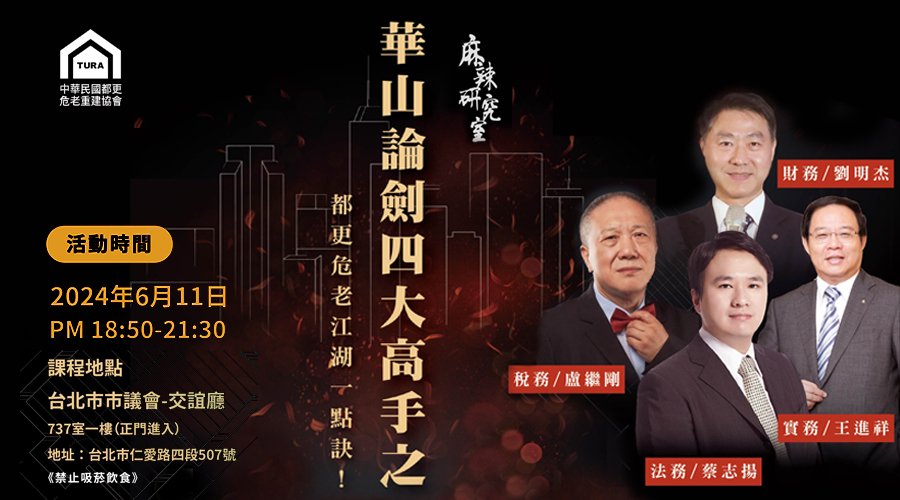 TAID推薦課程|《麻辣研究室》華山論劍四大高手之「都更危老江湖一點訣」!