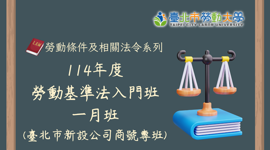臺北市政府勞動局│114年度「1月及2月勞動基準法入門班」