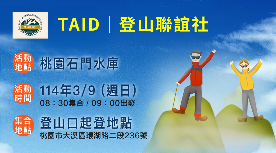 TAID登山聯誼社|三月份活動~桃園石門水庫🚶♂️