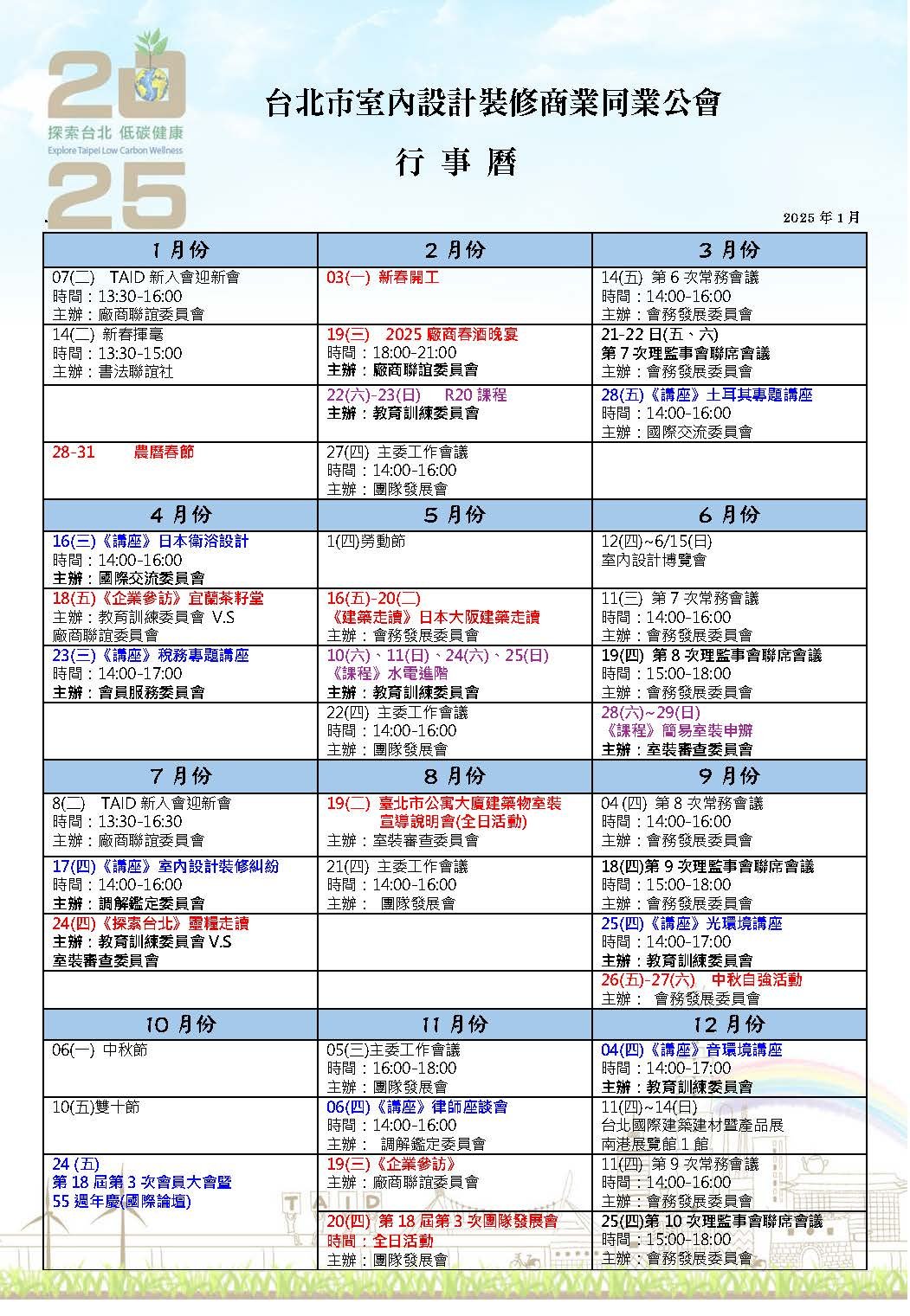 TAID 公告 | 2025行事曆📆