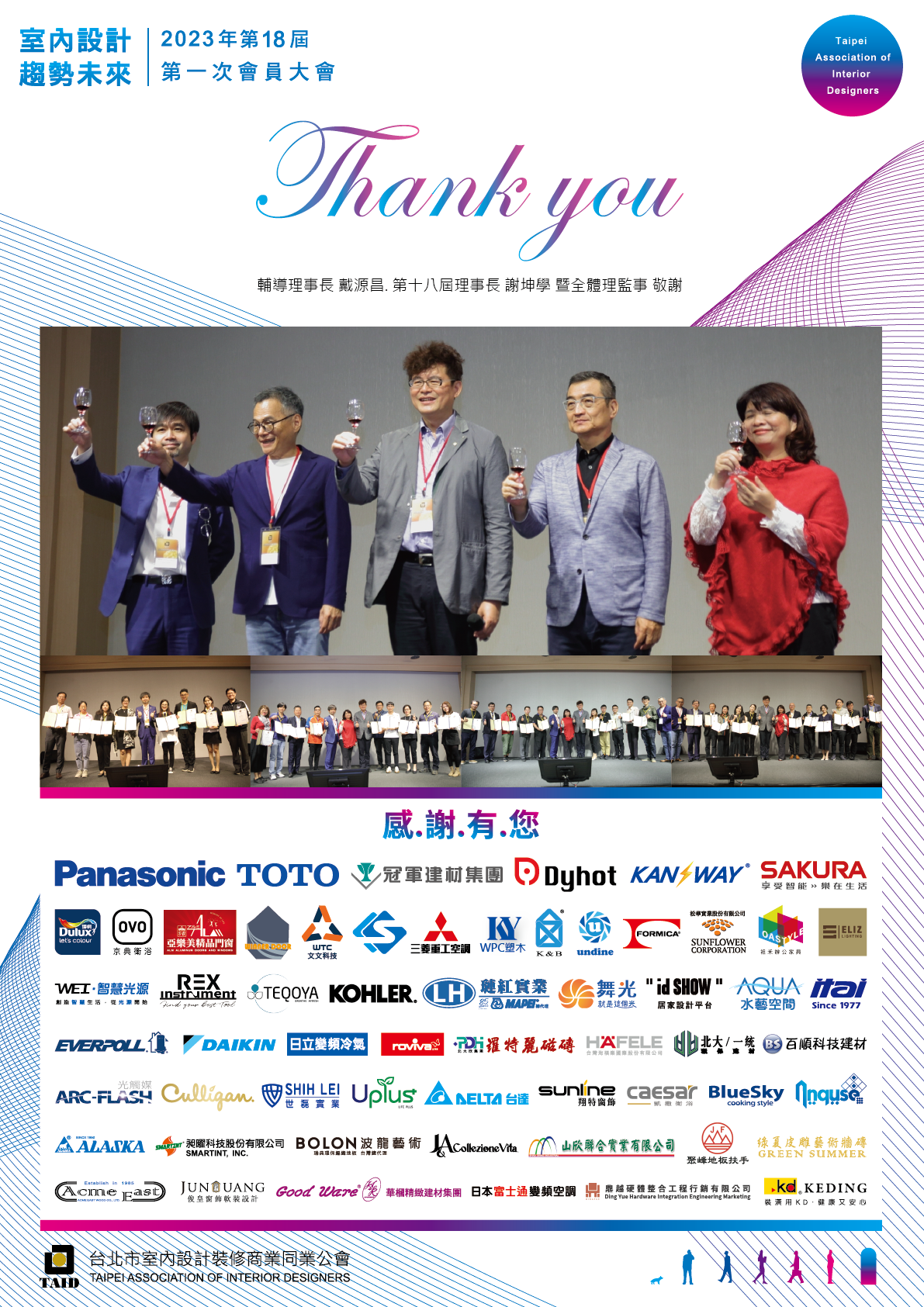 感謝TAID廠商贊助會員們對本會第十八屆第一次會員大會的鼎力相助💪 讓全體會員們在參加大會同時可以實質體驗許多新產品✨ 因為有廠商們的支持💖豐富了整個會場 贊助許多抽獎品🎁🎁🎁讓大會充滿歡笑驚喜👏 感恩有您🙏冀希未來持續支持TAID🙏一起共創室內設計產業蓬勃未來🎉