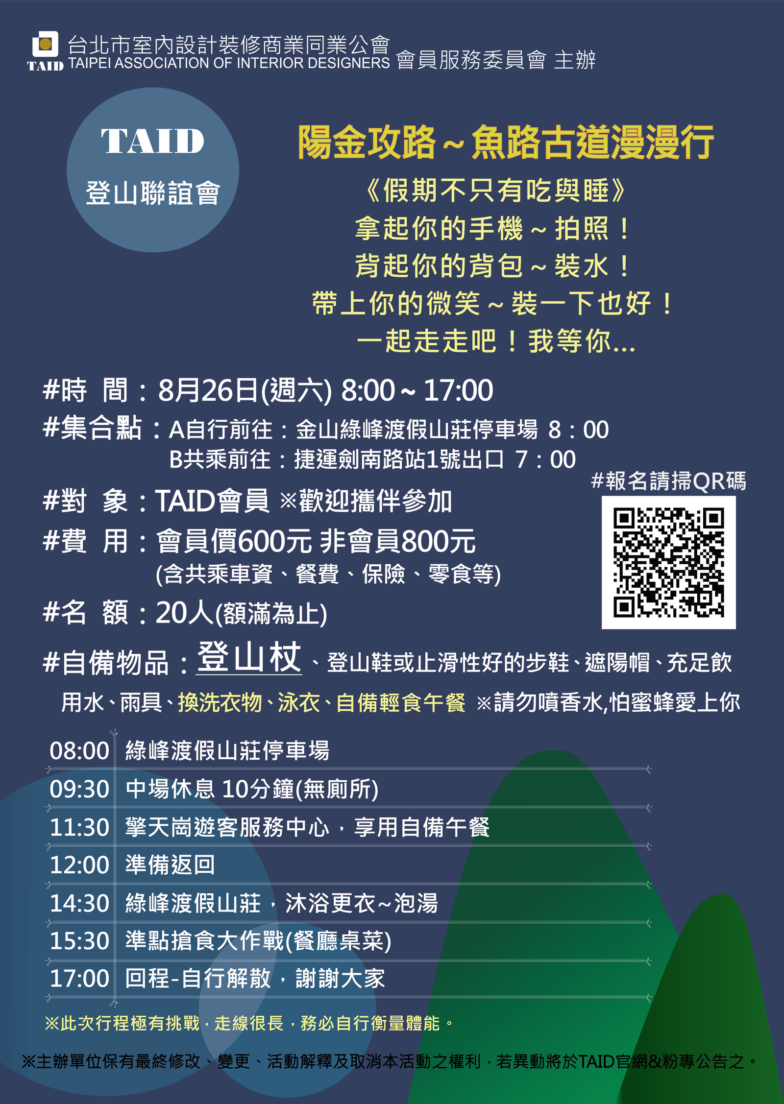 📌集合地點:A.自行前往:金山綠峰渡假山莊停車場8:00………………….