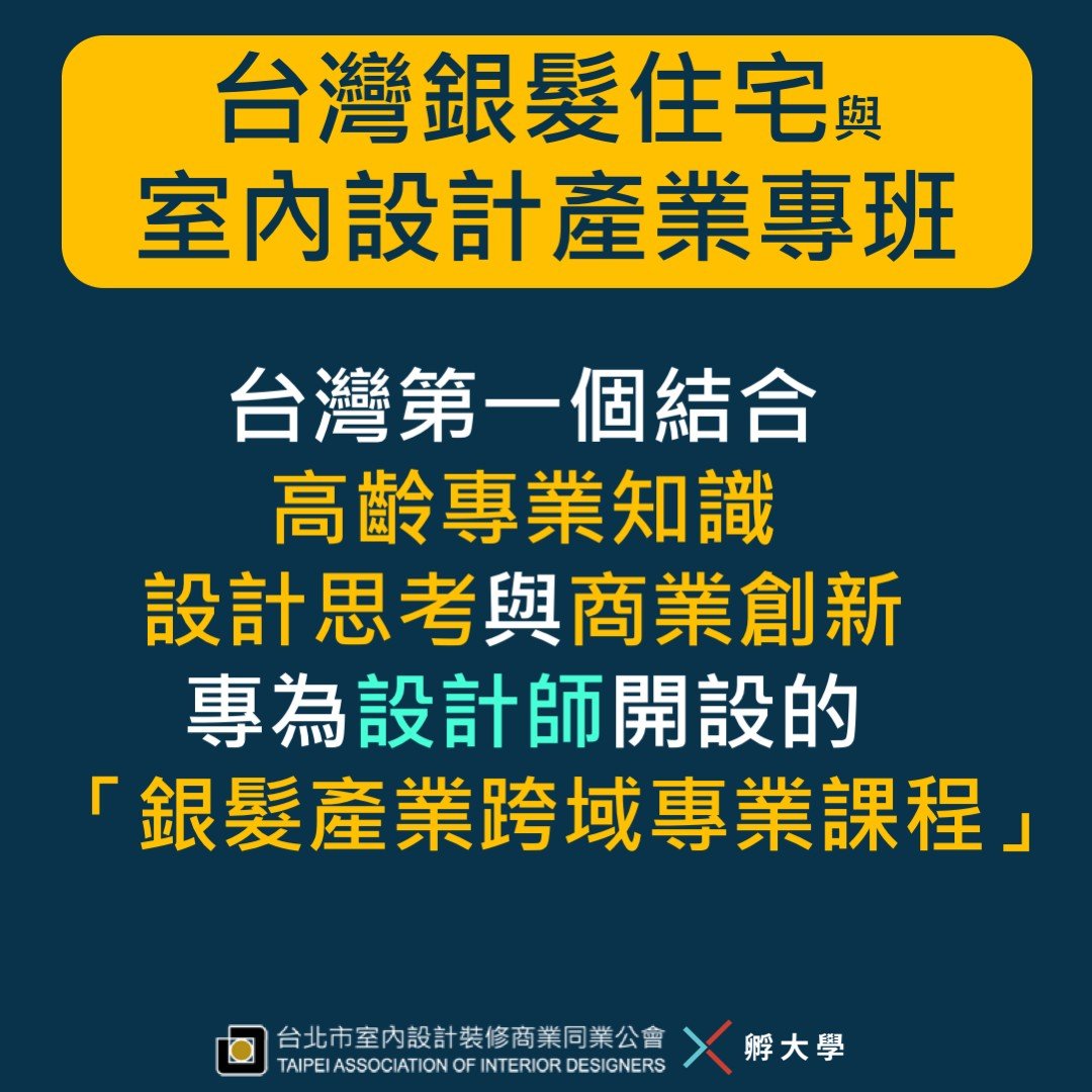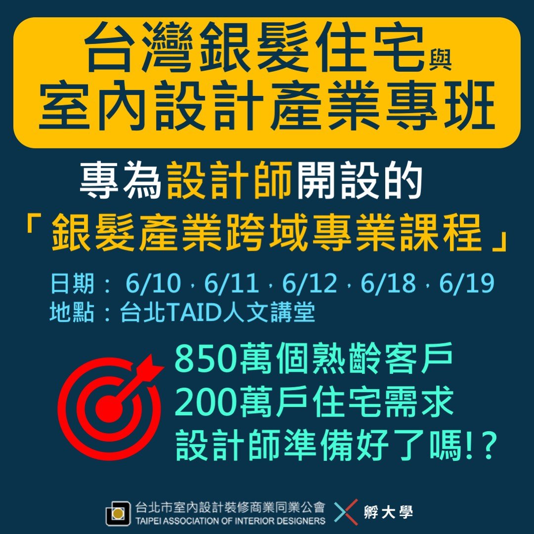 TAID X 孵大學 主辦  | 老派設計師-台灣銀髮宅室內設計產業專班 課程 熱烈招生中📣