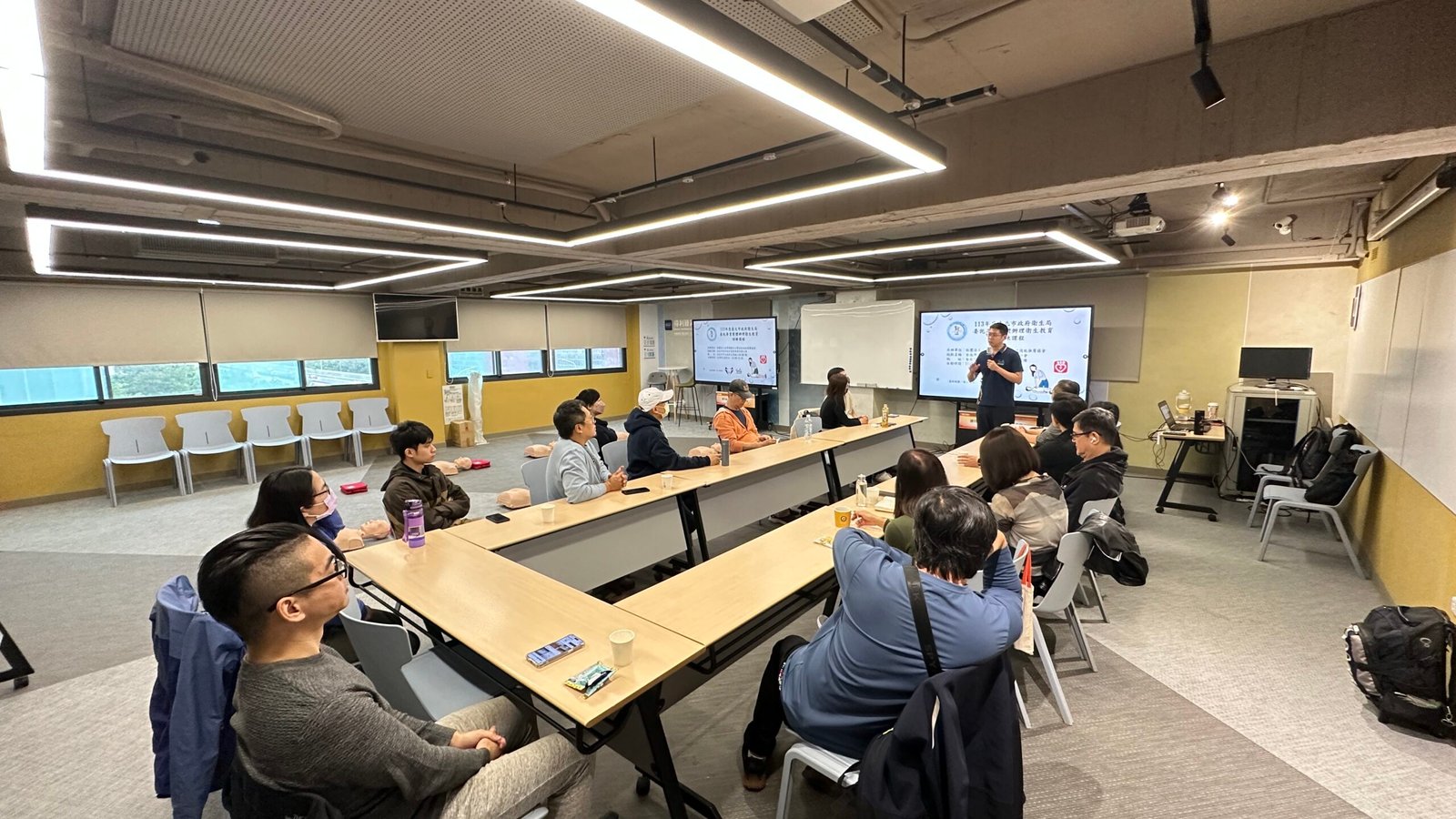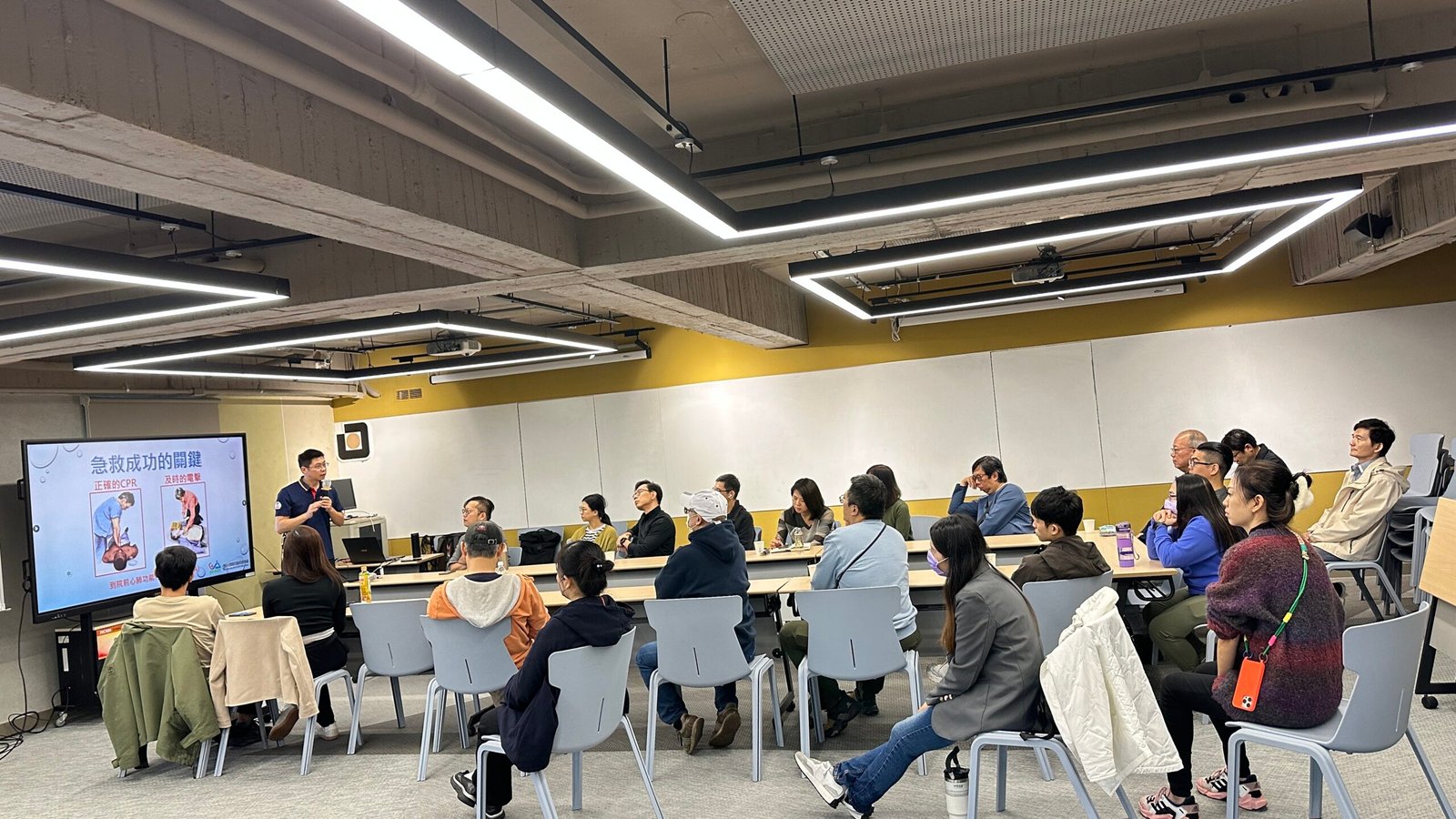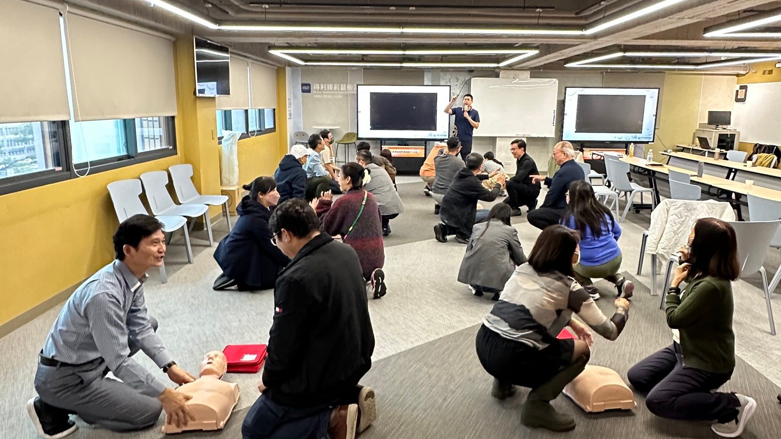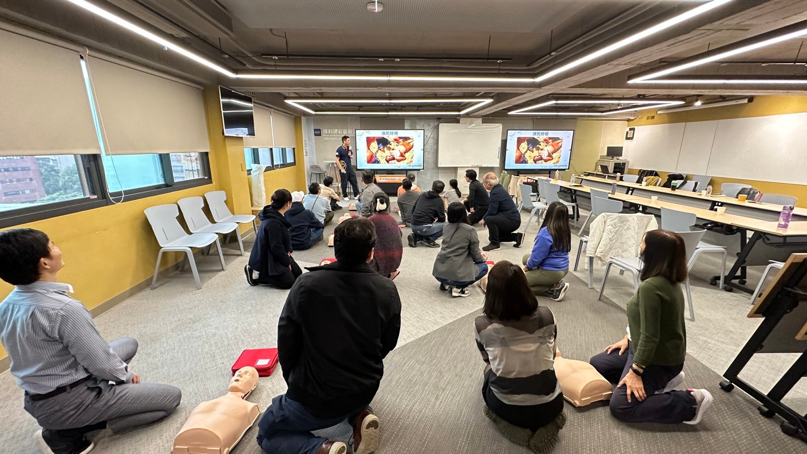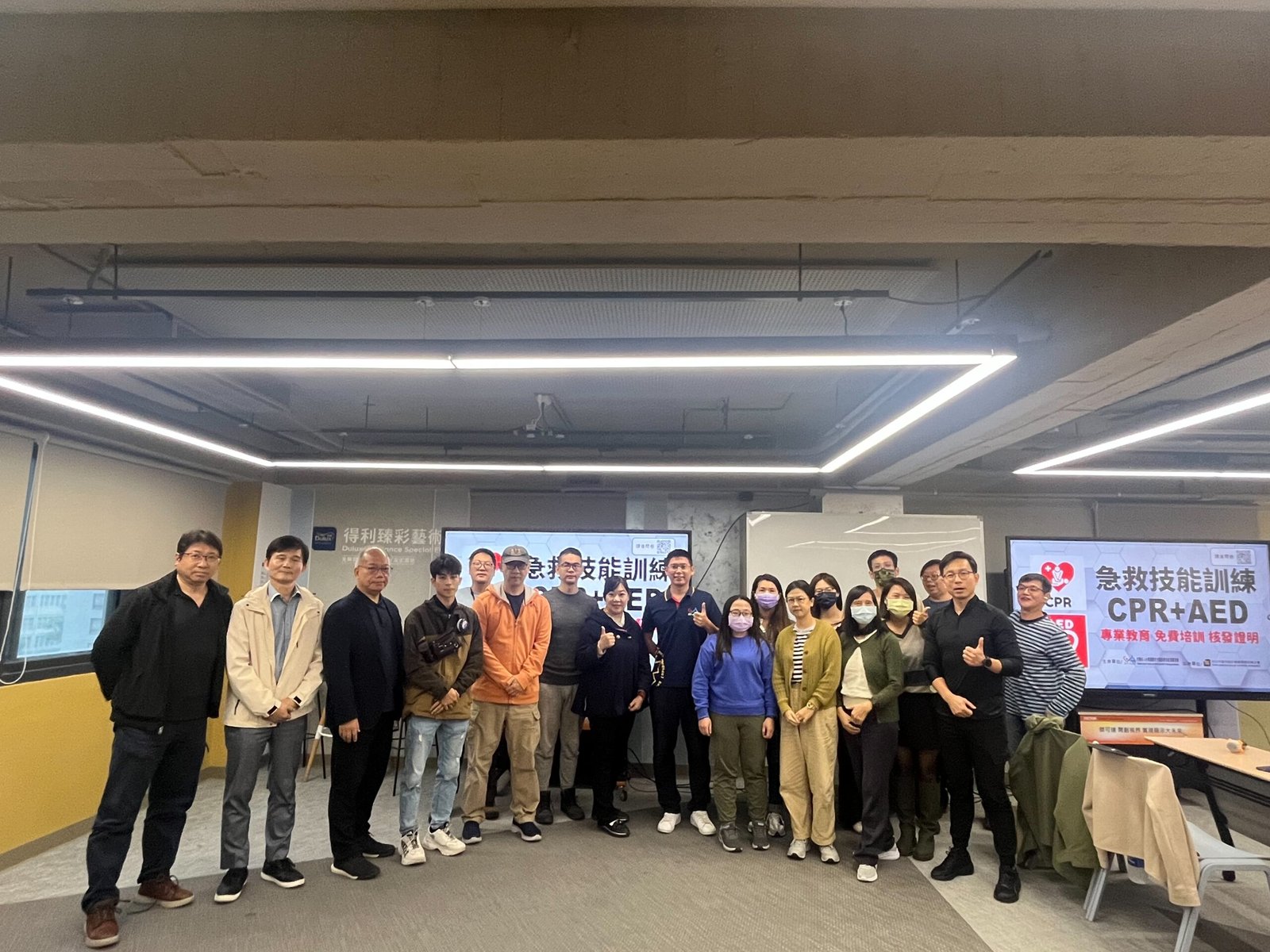 CPR+AED急救技能是現代人都應該學會的基本急救技能! 生命中不一定會遇到,但當需要時,就能救人一命!💝 台北公會開放租借的「TAID人文講堂」為AED安心認證場所 感謝受邀的社團法人台灣運動安全暨急救技能推廣協會✨ 講師教導大家正確的急救概念以及CPR的急救姿勢、AED的操作方式 生動活潑、深入淺出的說明,搭配影片以及實際生活案例的完整解說 讓大家都非常有收穫💪也深刻了解急救的重要性👏 完整參與此課程並經考核及格後給予臺北市政府衛生局頒發的訓練證書!✌️ 響應政府衛生局提倡的全民急救教育精神🎉