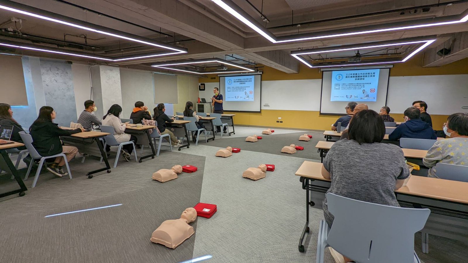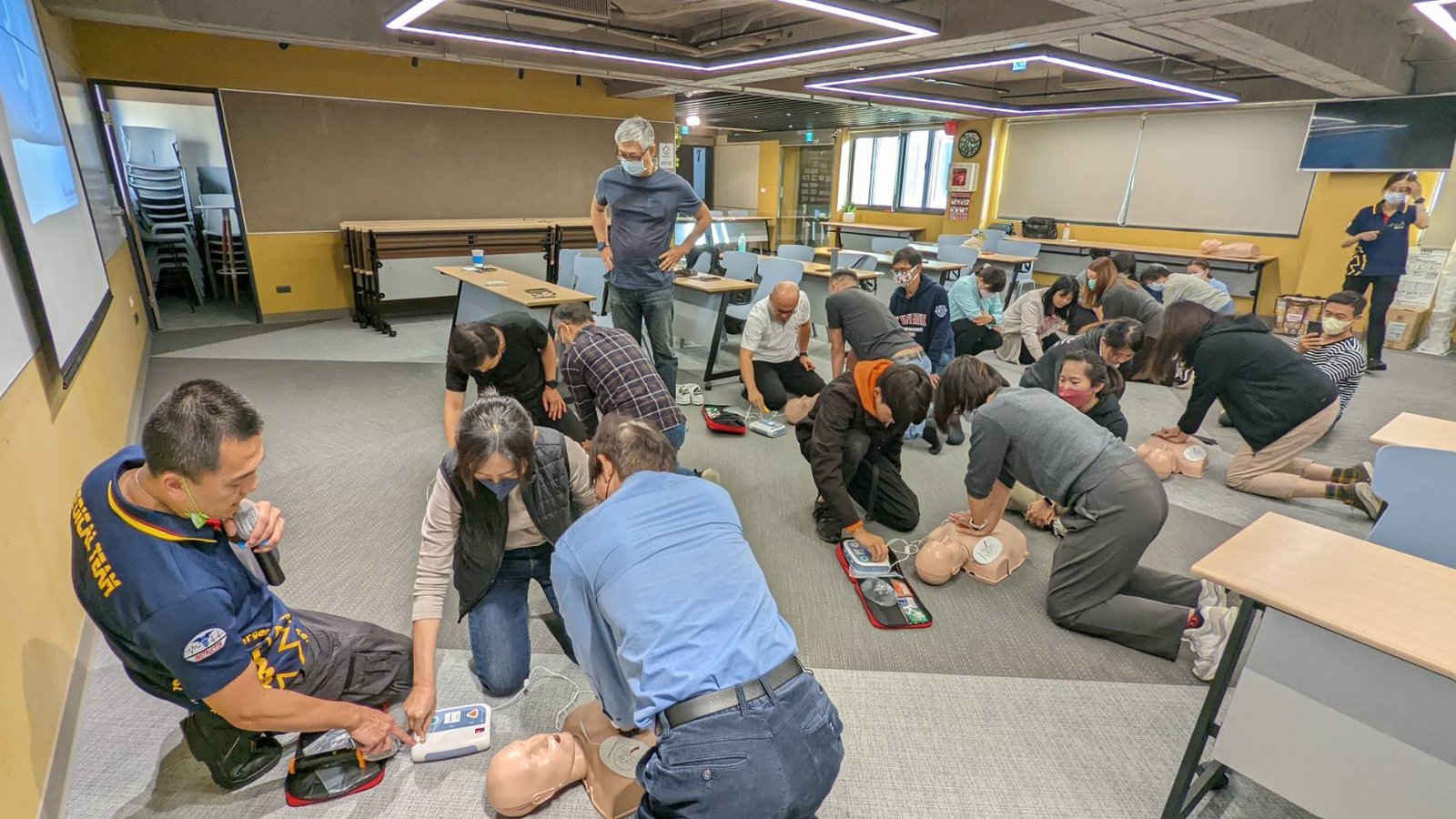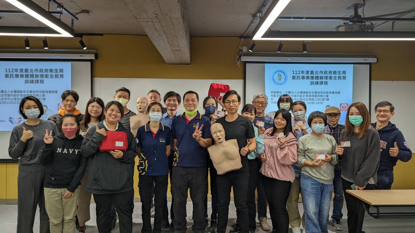 CPR+AED急救技能是現代人都應該學會的基本急救技能! 生命中不一定會遇到,但當需要時,就能救人一命! 台北公會開放租借的「TAID人文講堂」為AED安心認證場所 感謝受邀的社團法人台灣運動安全暨急救技能推廣協會✨黃奕清講師 教導大家正確的急救概念以及CPR的急救姿勢、AED的操作方式 生動活潑、深入淺出的說明,搭配影片以及實際生活案例的完整解說 讓大家都非常有收穫💪也深刻了解急救的重要性👏 再次感謝黃奕清講師💖歡迎下次有更多人一起來上課 響應政府衛生局提倡的全民急救教育精神🎉 ……. ……. ……. ……. …….