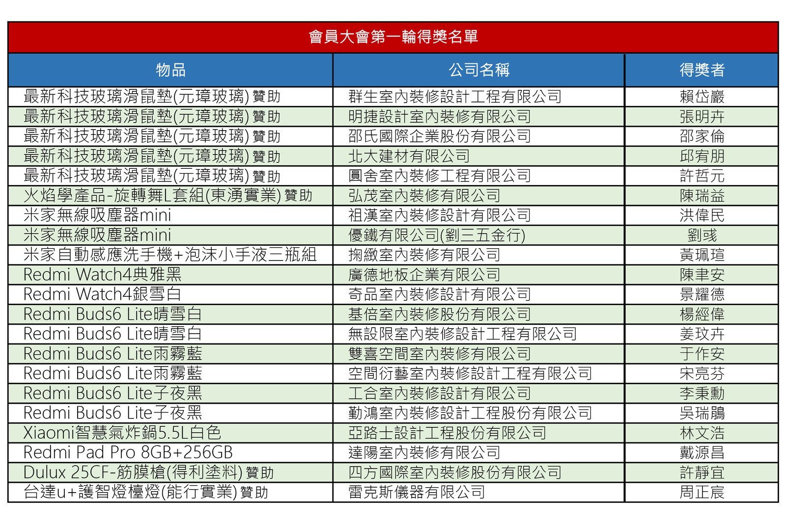 👉第二輪 得獎名單