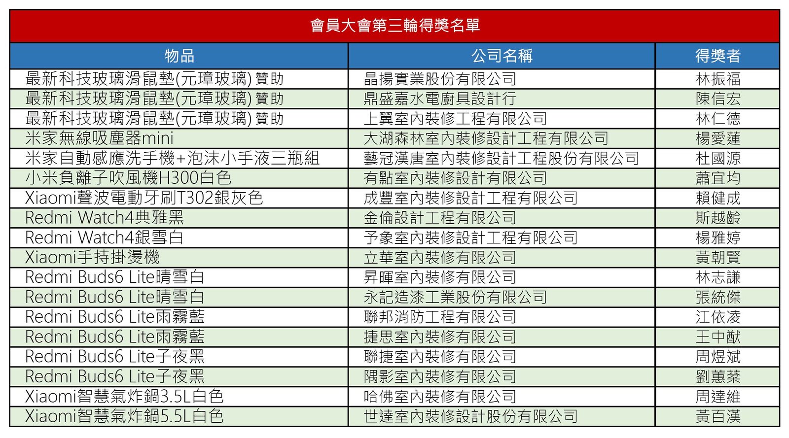 👉第三輪 得獎名單